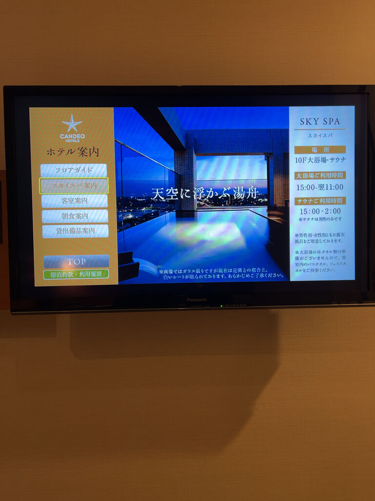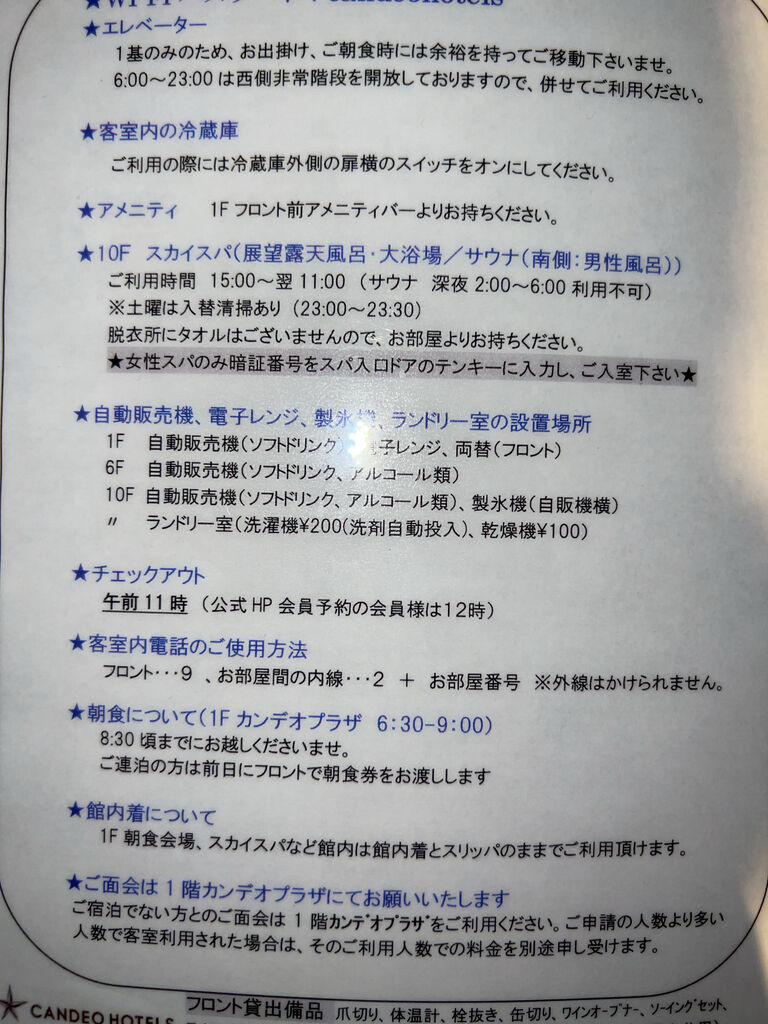 ホテルインフォーメーション。大浴場が深夜入り放題というのが魅力。