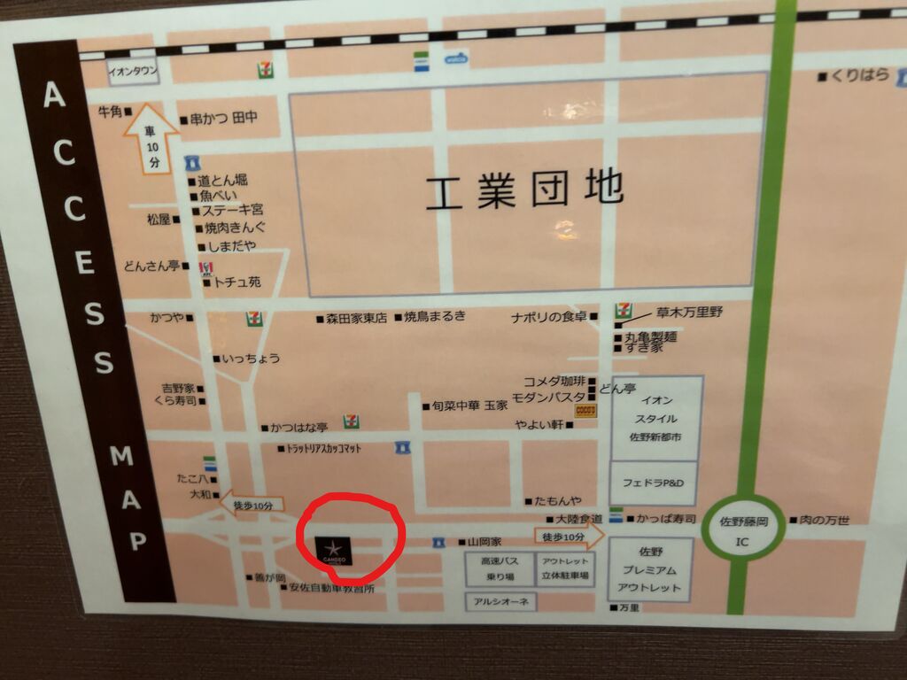 ホテル周辺マップ。佐野プレミアムアウトレットが近い。