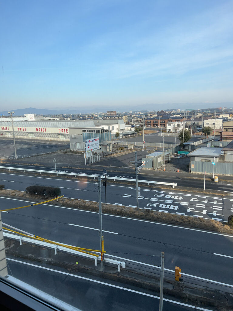 窓の外の景色。パチンコダイエーが見える。