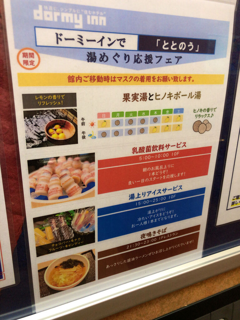 ウェルカムドリンク1本サービスはドーミーイン公式ページから宿泊予約した人のみとなった。