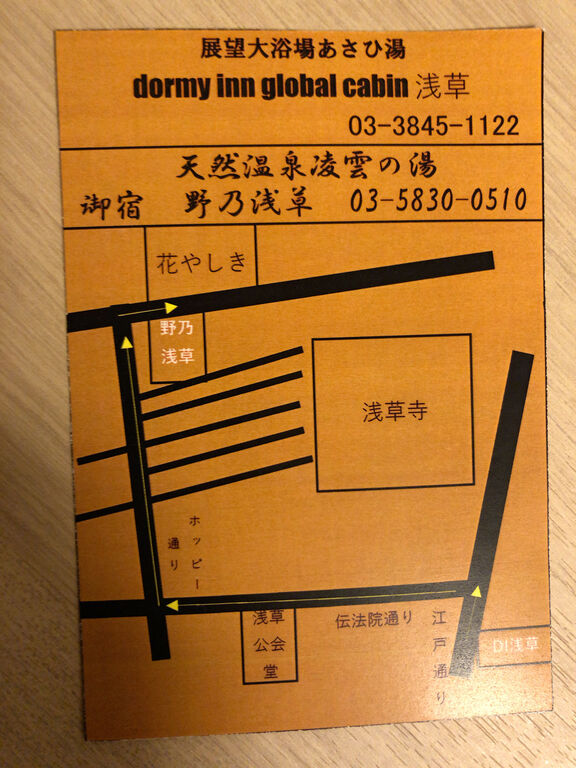 日によっては女性が利用できないけど、このホテルに宿泊した者は系列店の「天然温泉 凌雲の湯 御宿 野乃 浅草」の温泉を無料で利用できる⇒こちら