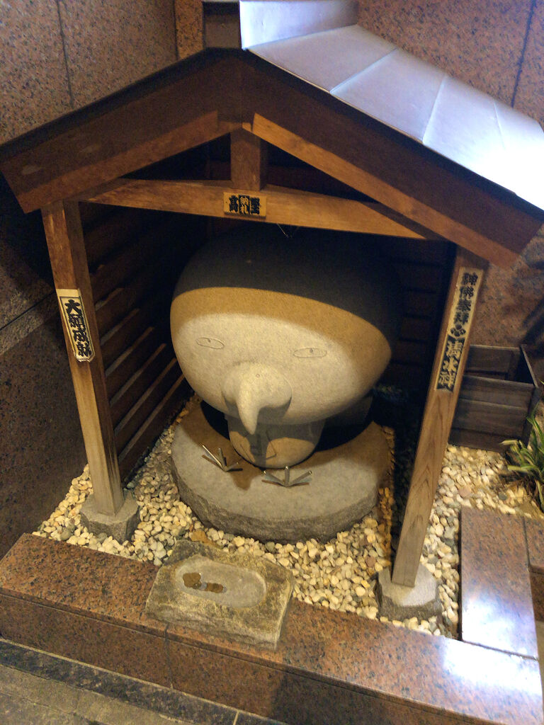 入口付近にドーミーインマスコットキャラの石像。