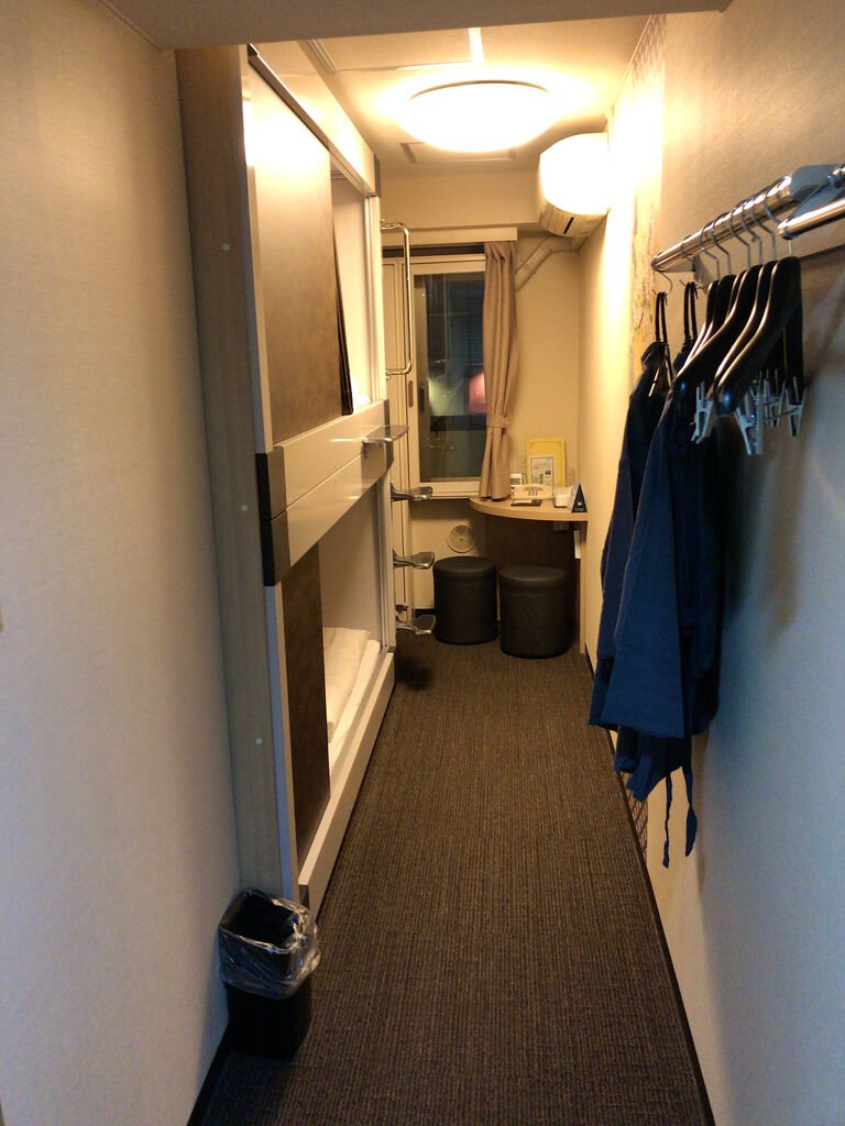 カプセルルームが上下段について圧迫感半端ない。