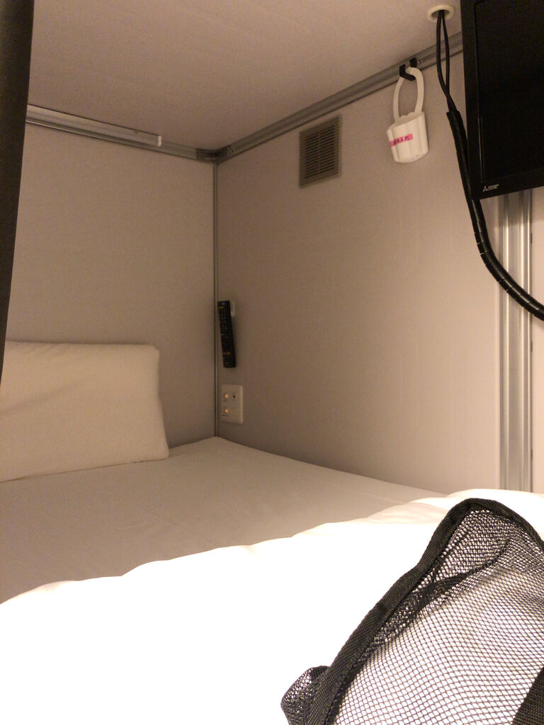 部屋内に上下段カプセルが収納されたヘンテコな部屋に宿泊したが、宿泊する際、同じベッド男性2人じゃ抵抗感があるという人には利用価値があると思う。