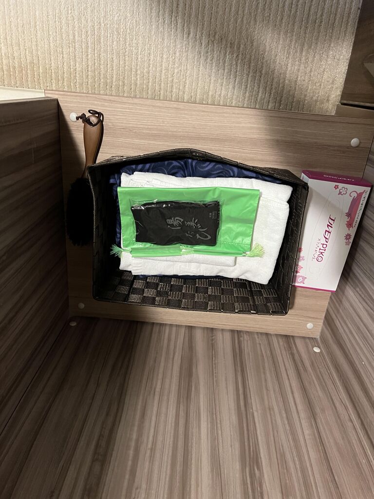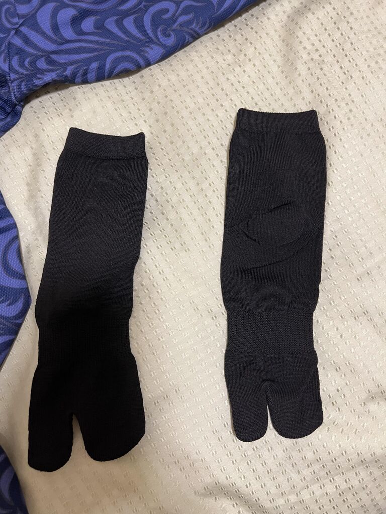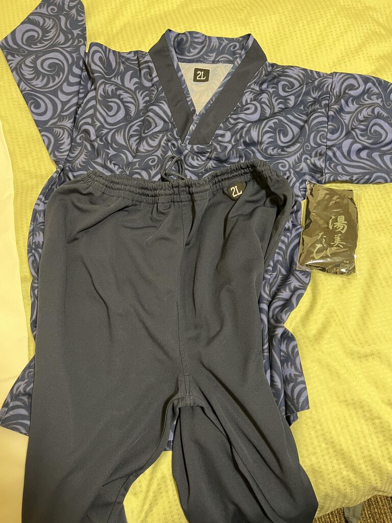 足袋、館内着、タオル。スリッパが無いので足袋は助かる。