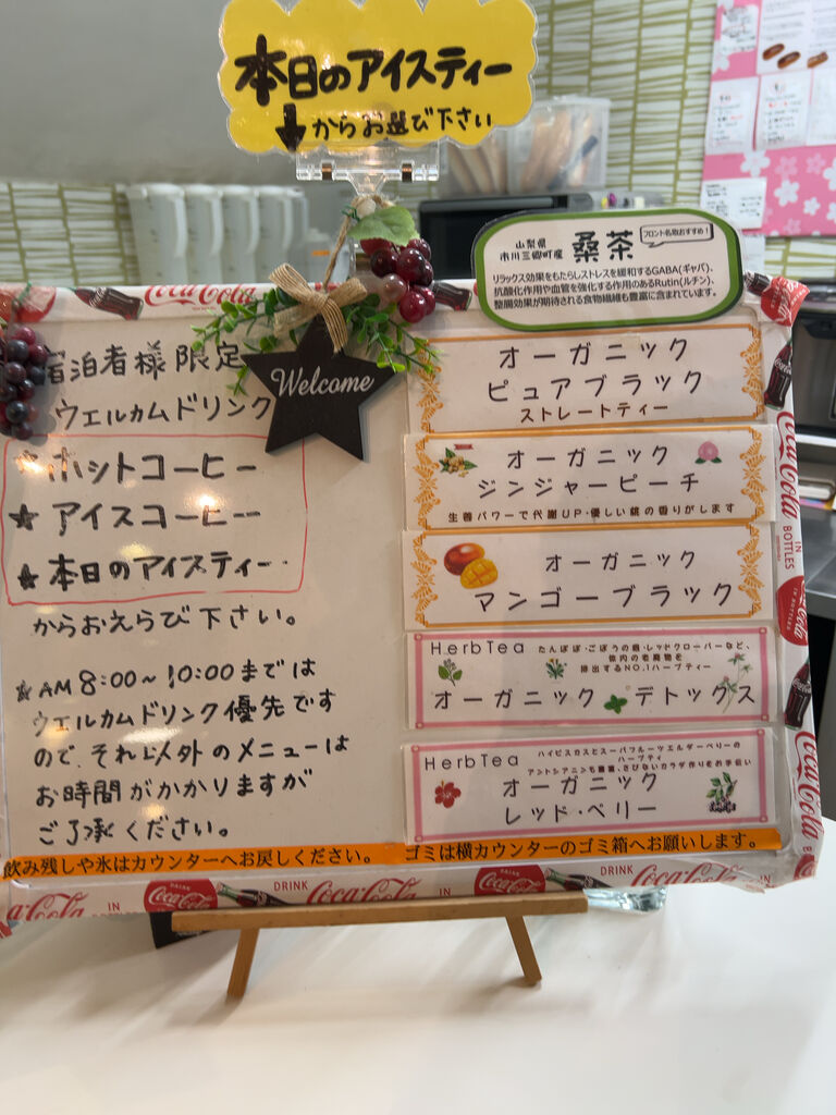 オーガニックカフェナチュールでウェルカムドリンクをいただいた。この中から選べる。