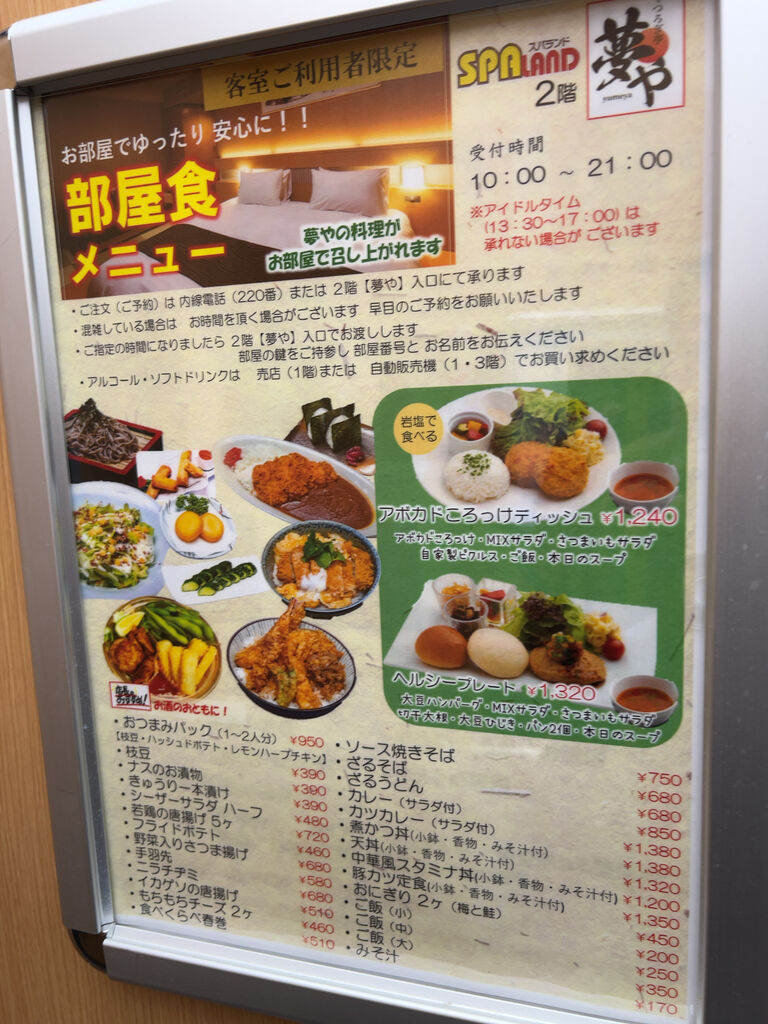 部屋食メニュー。